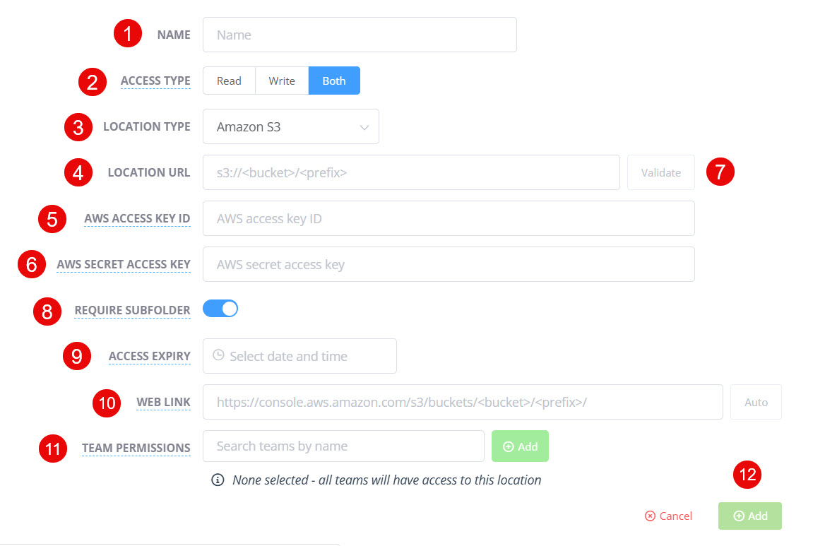 Select which teams you wish to have access to the storage location or leave blank for all teams to have access.