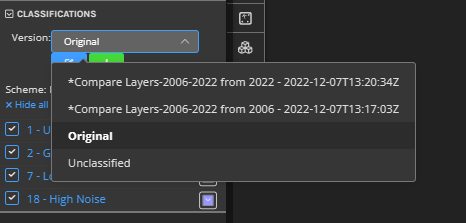 - Ensure the classification version you intend to run this analytic from is active in the Viewer. Select the desired Classification Version from the Classifications list.