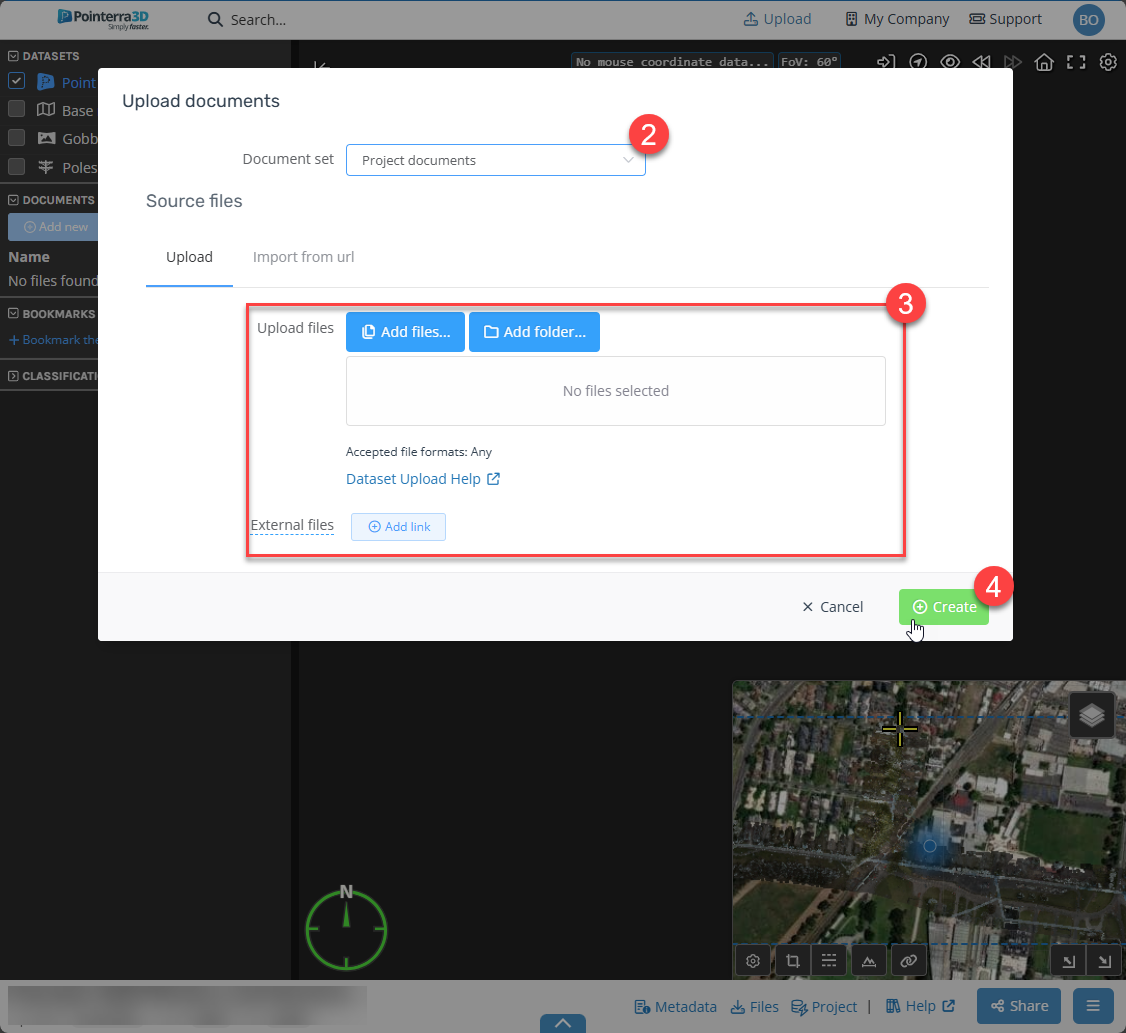 You can attach documents to a project directly via the left-hand side datasets manager. To do this, follow these steps: