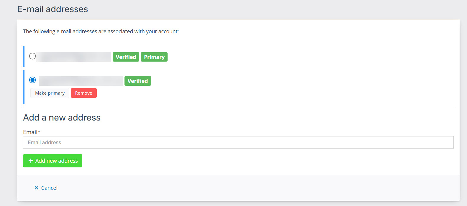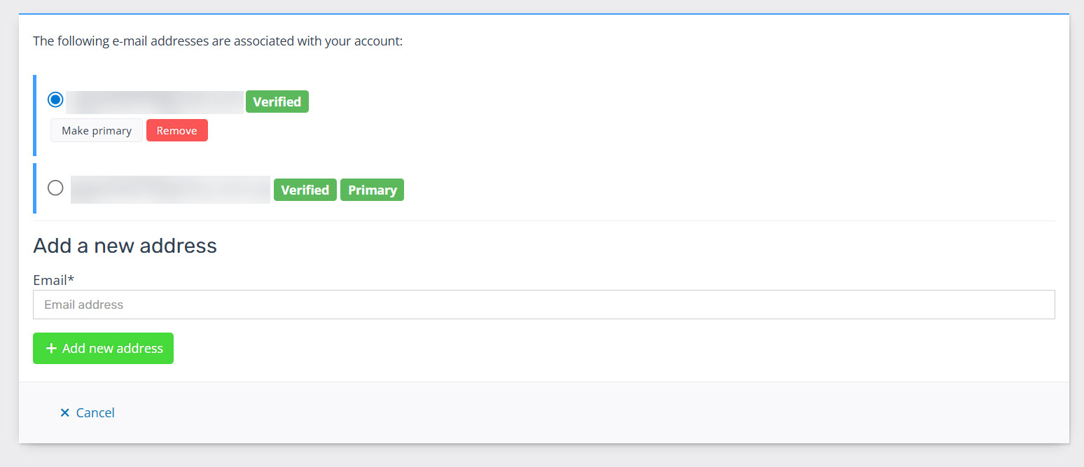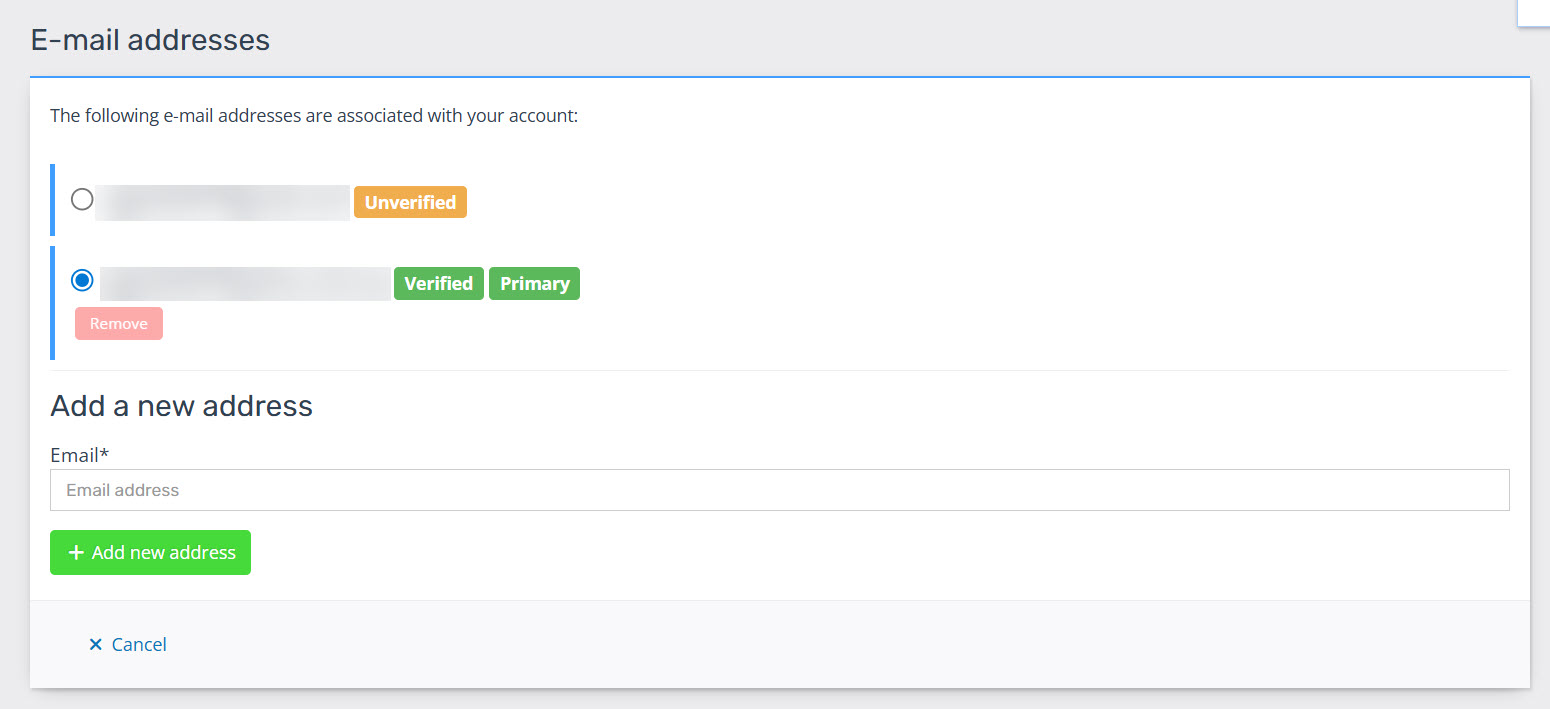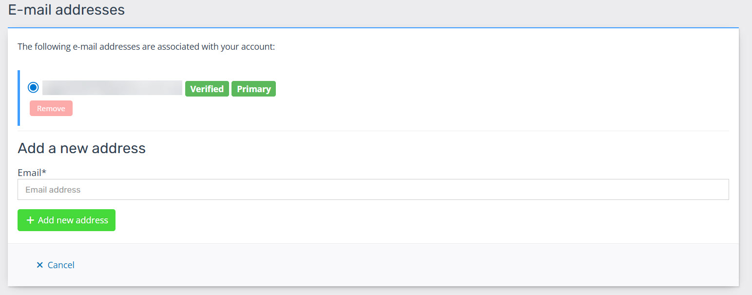 Note: updating/adding a new email is not available for 2FA enabled accounts. If you have 2FA enabled and you need to change your email address, please lodge a support request.