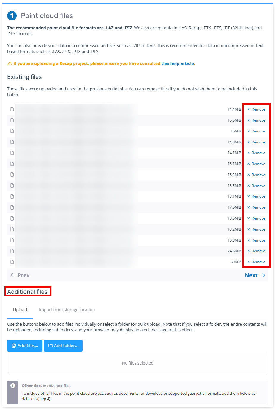 Then click the Begin Upload button to reprocess. Note that only new files that you add will be uploaded as the existing files are will already be on Pointerra.