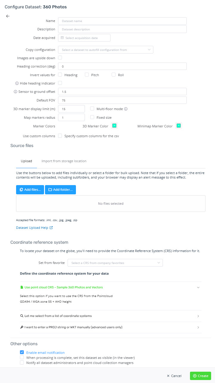 If you find that your heading indicator is out by 180 degrees when viewing the images, then you will just need to edit the dataset properties and enter 180 for the rotation.