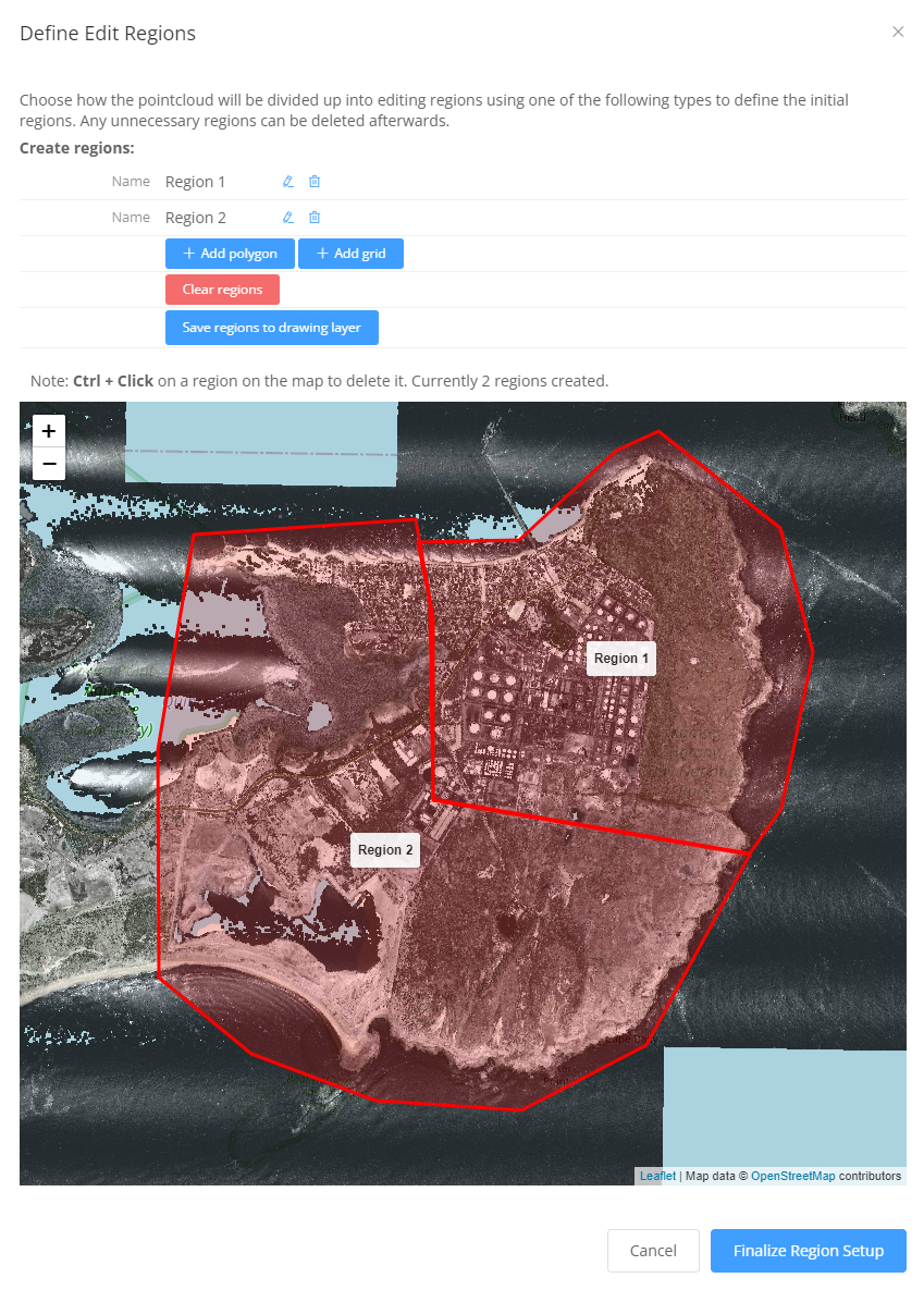 Click ‘Finalise Region Setup’ when completed to allow users to select and work on the defined regions.