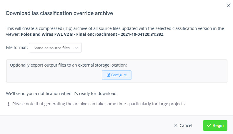 To download classified point clouds that have been created in the Pointerra3D classification analytics the "Create las override archive" tools will: